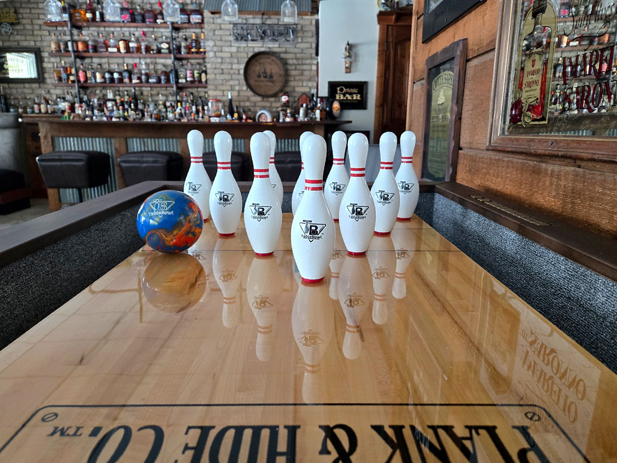 TableBowl is the only shuffleboard bowling set in the world scaled to the width of the shuffleboard play surface and that comes with an actual bowling ball. It is unmatched in realism.