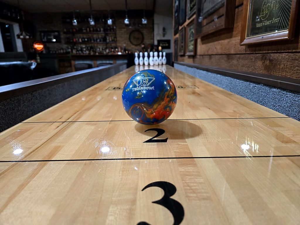 Shuffleboard surfaces are entirely hard made using a 1-1.5lb ball. The ball or pins will not damage your play surface.
